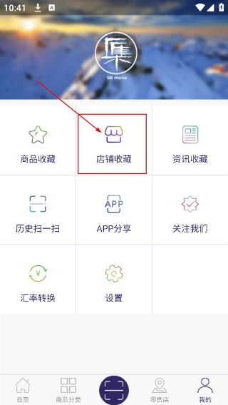 2、进入个人页面的功能区域后,找到并点击【店铺收藏】按钮,这个按钮旁边还设有【商品收藏】【资讯收藏】等类似的功能选项。