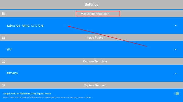 2、进入“Settings”页面后,找到【Maxzoomresolution】选项,点击进入其参数选择界面。