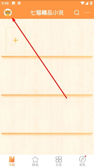 1、点击左上角的头像入口,即可进入个人相关功能页面,页面底部设有“书架”“精选”等功能栏,可通过这些功能栏切换不同模块。