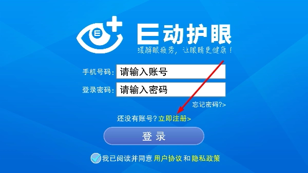 2、进入【巨动护眼】的登录页面后,点击对应标识的选项,即可跳转至注册界面,进而完成新账号的创建流程。