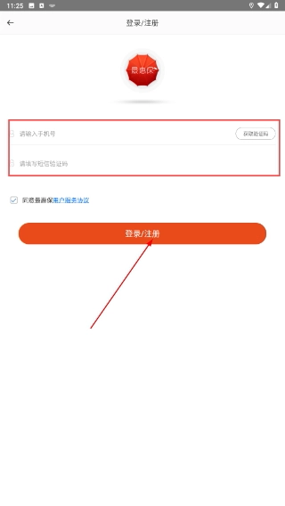 4、在登录界面填写账号、获取并输入验证码后,点击【登录/注册】按钮,即可完成账号验证流程。
