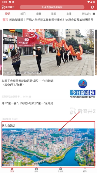 2、在平台首页,挑选目标资讯内容(例如“魅力自贡井”相关的图文),点击该内容后即可进入对应的详情页面。