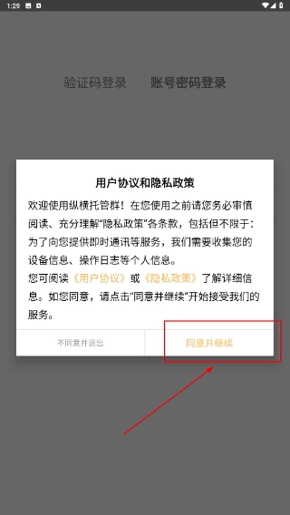 1、当【用户协议和隐私政策】窗口弹出后,仔细阅读相关条款内容,随后点击【同意并继续】按钮,以推进后续的操作流程。