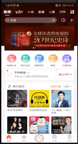 这里汇聚了小说、儿童、相声评书以及英语等各类有声内容,你想听的内容基本都能在这里找到。