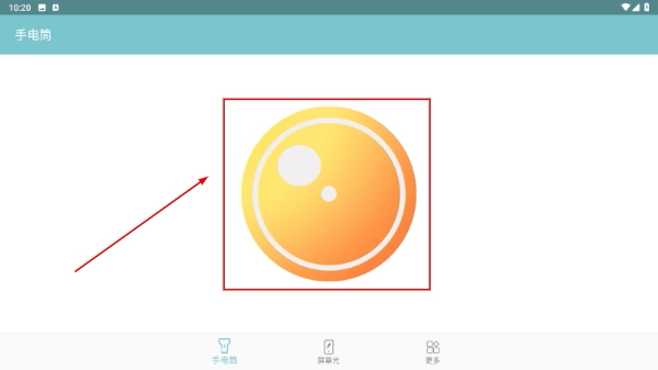2、启动后圆形按钮会切换为亮色显示,这意味着手电筒已处于开启状态。