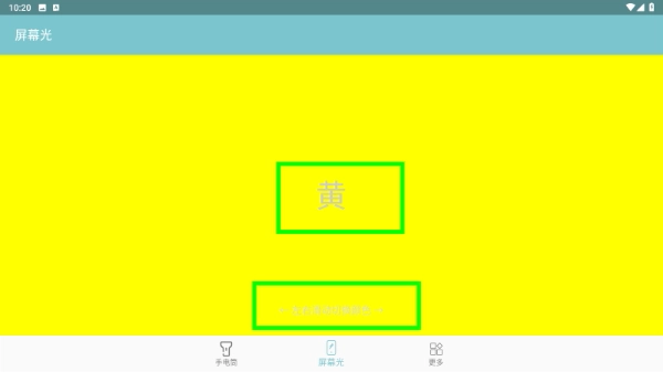 4、在屏幕光模式下左右滑动,能够把背景颜色切换成“黄”色,从而完成屏幕光颜色的调整步骤。