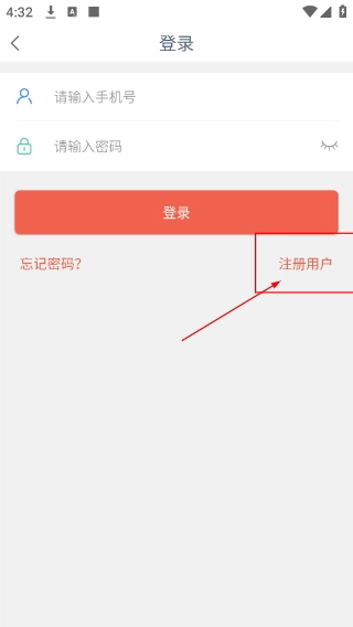 3、进入【登录】页面后,需要填写【请输入账号】和【请输入密码】这两项内容;如果还没有注册账号,可以点击【注册用户】按钮,跳转到注册界面进行注册。