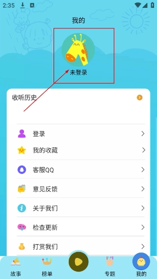 2、进入【我的】页面后,头像旁边会显示【未登录】标识,点击【登录】选项即可进行账号相关操作,此外还能看到【我的收藏】等功能的入口。