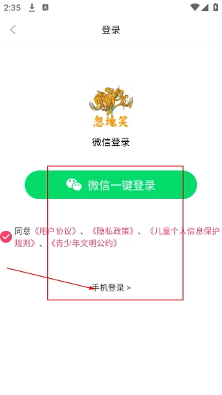 3、进入登录页面后,可选择【微信一键登录】实现快速登录,也能点击【登录】按钮切换登录方式,不过在此之前需要先同意相关协议。