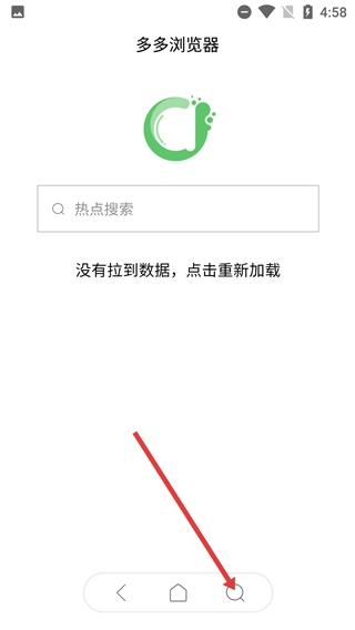 1、打开多多浏览器首页后,点击底部的搜索按钮,就能进入搜索操作页面,为内容搜索做好准备。