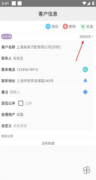 3、进入客户详情页面,查看各项信息内容,点击添加标签选项,准备为客户配置对应标签。