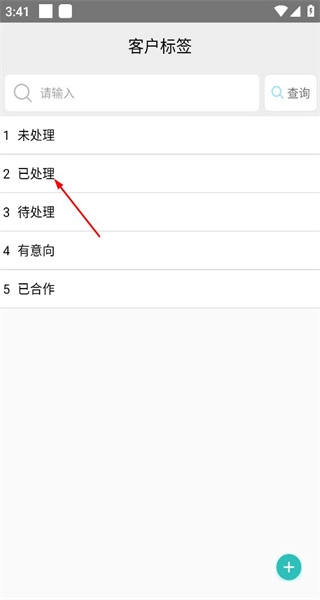4、进入客户标签页面,查看现有标签,选择“已处理”标签,完成对该客户的标签添加操作。