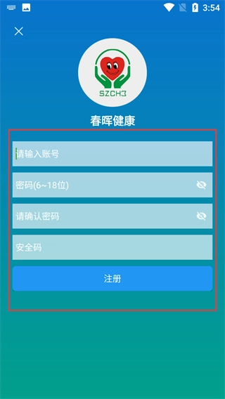 1、进入春晖健康的登录界面后,能看到【请输入账号】和【密码】的输入框,接着选择【没有账号?请注册】这个入口。