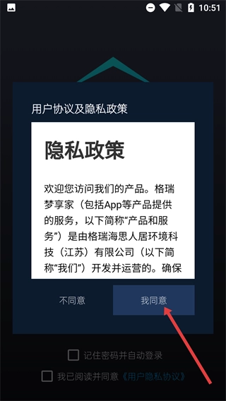 1、打开【格瑞梦享家-涵盖App等产品】的界面后,先查阅【隐私政策】以了解运营方的相关信息,随后点击弹窗里的【我同意】按钮,这样才能继续进行后续的操作流程。