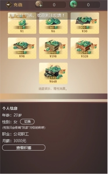 2、提供氪金模拟器玩法,可以定制自己的身份