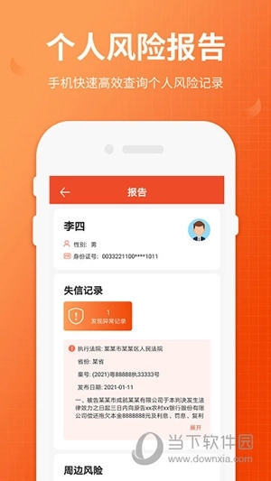 全国法院失信人查询手机版可帮助用户查询失信人员信息,覆盖范围遍及全国。无论是日常生活中的人际交往,还是工作场景下的合作、求职等活动,人们常需与陌生人打交道。若有合作需求,用户可通过该软件进行查询,了解对方的信用状况及是否为失信人员等信息,一键即可快速生成安全可靠的报告,让你随时掌握本地及全国范围内的失信人员动态。