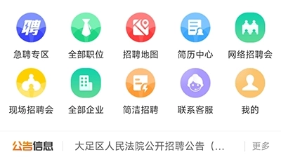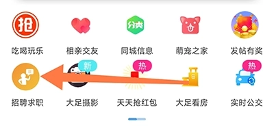 1、第一步是打开大足生活通,接着点击主页面上的招聘求职选项;
