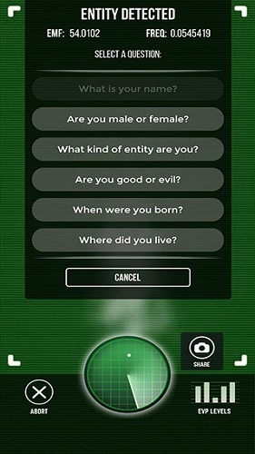 2、当发现幽灵后,屏幕上会浮现虚影,此时点击上方的【ASKAQUESTION】按钮,就能与幽灵进行互动。