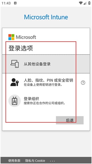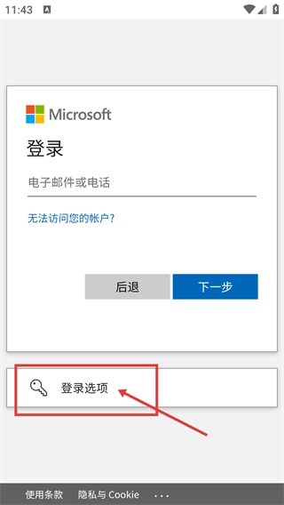 2、在Microsoft登录界面,点击【登录选项】按钮,即可展开多种登录方式的选择列表。