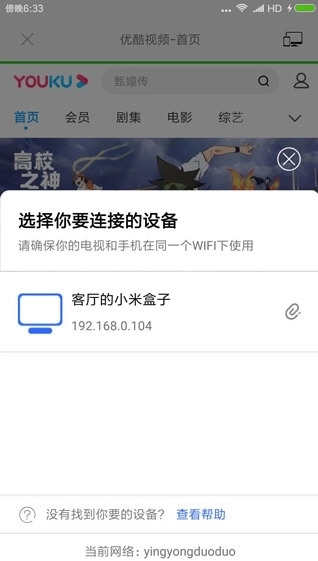 2、投屏设备与其他智能设备,需接入同一无线WiFi局域网环境。