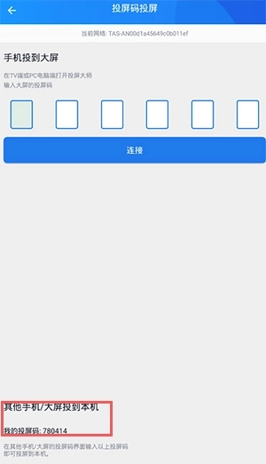 3、另外还支持投屏码投屏,只需输入投屏码就能完成投屏操作(投屏码位于左下角位置);