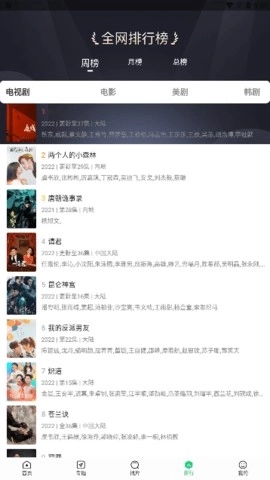 4、全网排行榜页面,这里罗列着各类精彩的排行榜,大家可以直接查看。