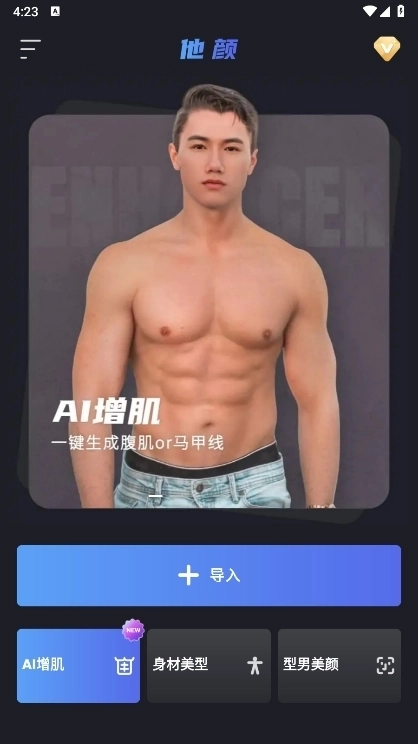 -全新推出AI增肌功能,通过AI一键生成腹肌或马甲线,助你轻松拥有八块腹肌或健身马甲线!