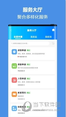 2、校园服务板块整合多种高频使用的校园服务资源,搭建智能化服务连接体系,助力多方协同推进教育工作开展。