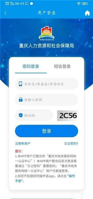 1、安装软件后进入“用户登录”界面,可选择密码登录或短信登录方式;若没有账号,点击“注册新用户”即可完成账号注册。