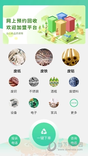 支持多种废品类别,涵盖废纸、废铁、废铝、废铜、不锈钢、酒瓶、废塑料等。
