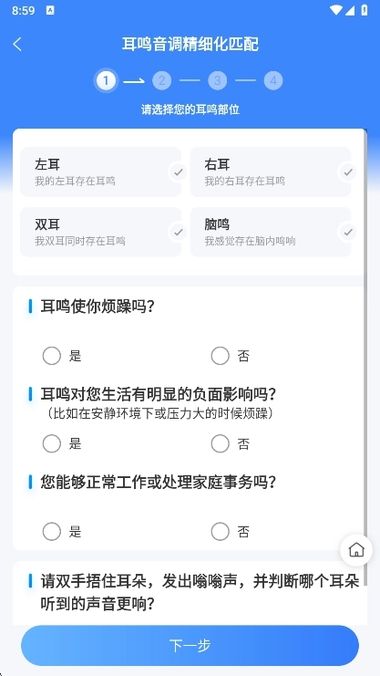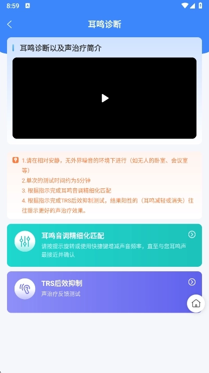快速匹配:借助“耳鸣音调快速匹配”功能,你能在10秒内从12种常见耳鸣声里挑选出和自身耳鸣最相近的选项,该功能可覆盖超80%的耳鸣类型。