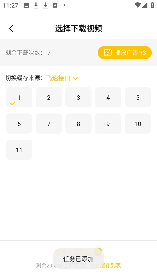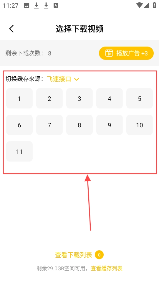 3、接着可根据需要选择特定集数进行离线。