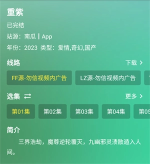 4、这里不仅支持用户在线播放,还能让用户体验线路视频播放,并选择具体的播放集数内容。
