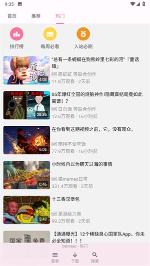 3、进入热门板块,你可以看到对应的排行榜,还有每周必看、入站必刷的内容。