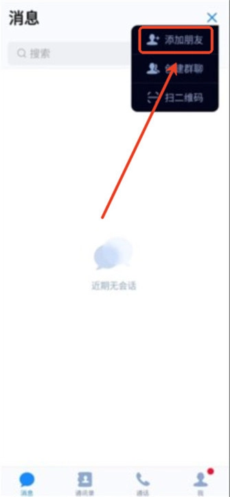 2、在弹出的菜单里点击【添加好友】选项,页面会跳转至好友管理界面。