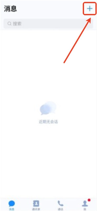 1、启动68聊天,在首页右上角点击【+】按钮。