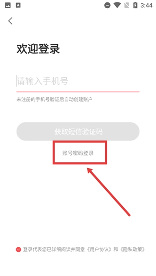 3、登录页面支持选择【账号密码登录】方式,若用户未注册,验证通过后系统将自动创建账户,操作前需先勾选协议同意选项。