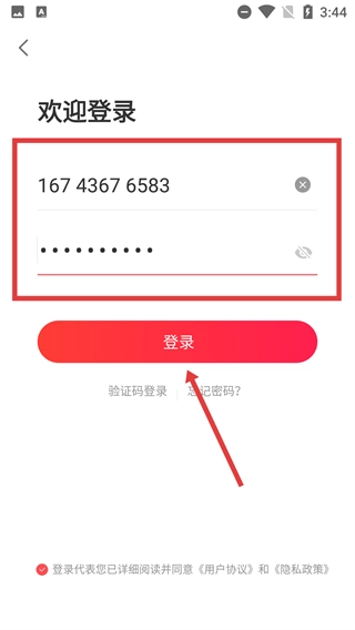 4、在账号密码登录页面输入【号】与【密码】后,点击红色的【登录】按钮,就能完成账号登录流程。