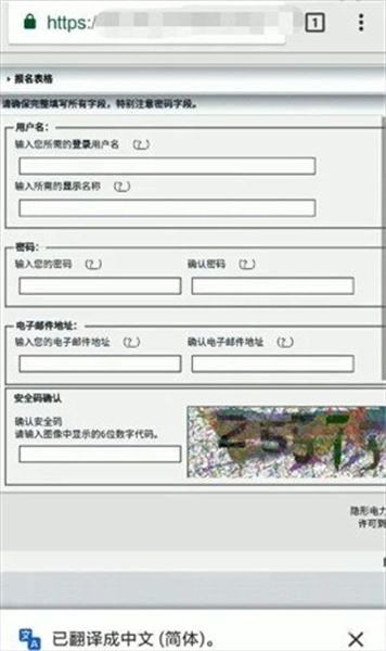 4、按照页面给出的提示填写表格,设置好你的用户名、密码和邮箱地址,再依据图案输入安全码进行确认,最后提交这份表格。