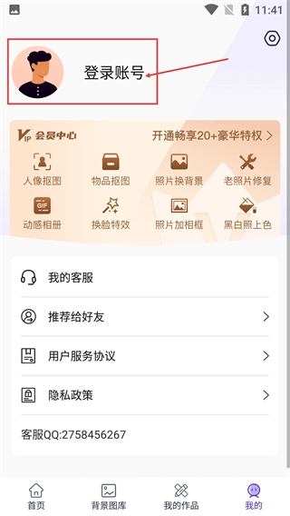 2、在【考拉抠图】首页,点击底部导航栏的【我的】按钮,进入个人中心页面后,就能进行账号相关的后续操作。