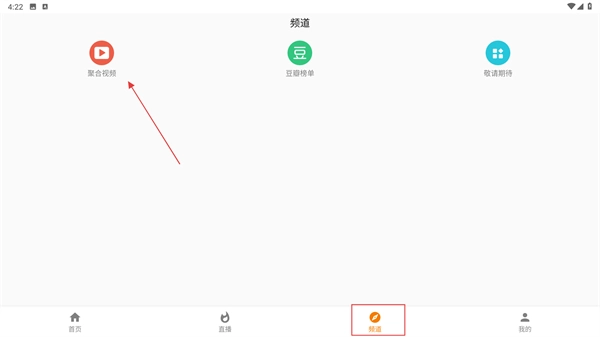 1、打开应用后进入【频道】页面,找到并点击【聚合视频】选项,即可进入视频平台聚合列表界面。