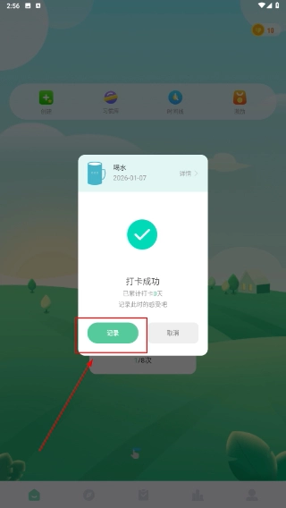 3、打卡成功后,在反馈弹窗中点击【记录】按钮,即可补充该行为的相关备注信息。