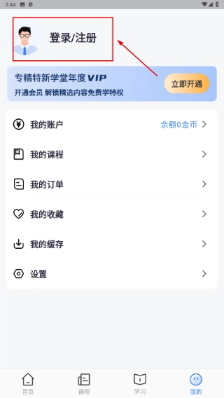 3、在“我的”页面找到并点击【登录/注册】按钮,进入账号操作界面,以便进行登录或注册操作。