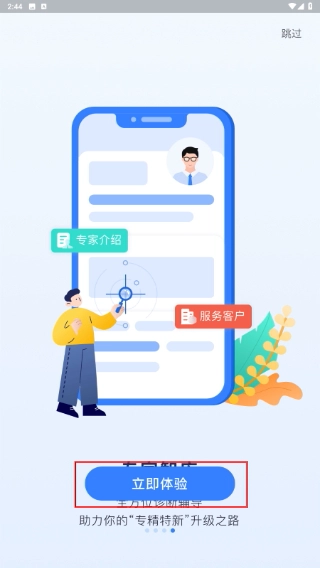 2、在引导页面点击【立即体验】按钮,即可进入应用的功能主界面,进而开始使用平台服务。
