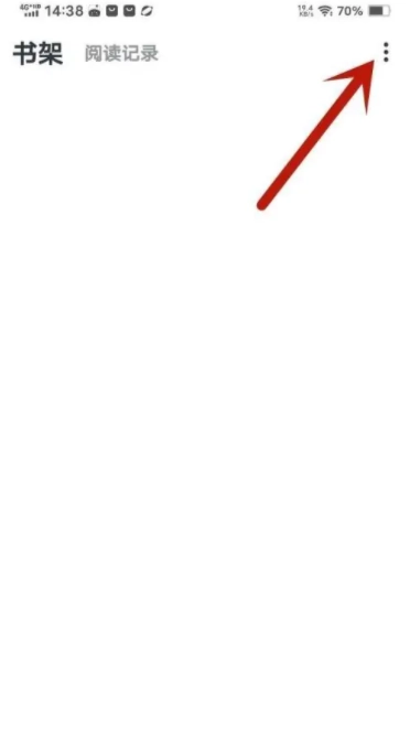 打开桌面上的全免小说进入书架页面,点击三个点。