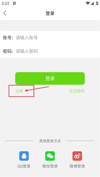 3、进入登录界面后,您可以在【请输入账号】和【请输入密码】的输入框中填写信息进行登录,也可以点击【注册】按钮完成注册,同时还支持【QQ登录】等第三方登录方式。