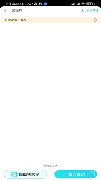3、我们既可以通过拍照直接将内容转换为文本,也能把已经写好的作文一键复制粘贴到平台上,完成后点击提交即可进行批改。