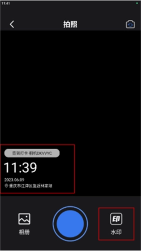 2、进入相机功能界面后,可轻点屏幕上的水印内容,也能按下右下角的“水印”按钮;