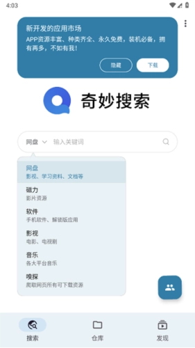 奇妙搜索是一款功能强大的搜索工具软件,用户只需输入关键词,就能快速找到所需内容。它采用先进的p2p搜索技术,为用户带来全新的搜索体验。无论是小说、资讯、新闻,还是漫画等各类内容,都能轻松搜索到。此外,软件整合了多种智能搜索工具,操作简单直观,让用户享受便捷的搜索过程。若您感兴趣,绝对不容错过!