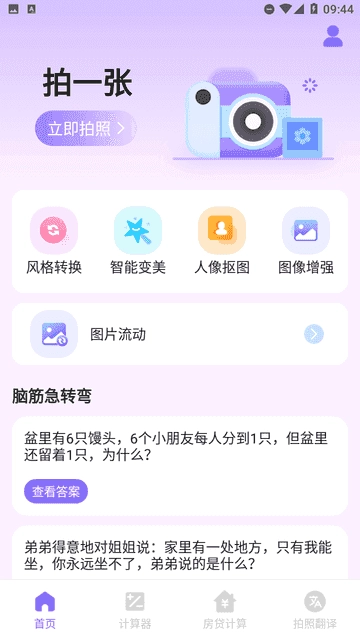 2、进入首页,选择不同的相机模式。